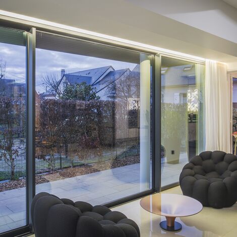 SlimPatio 68 est un système coulissant à isolation renforcée. Ses profilés minimalistes et dormants masqués permettent d’allier confort et élégance. Grâce au design ultra mince, cette fenêtre coulissante apporte un maximum de lumière naturelle et offre des vues panoramiques optimales. Les technologies innovantes intégrées garantissent des performances exceptionnelles en matière d’étanchéité au vent et à l’eau et d’isolation thermique (Uw = 1.2 W/m² K). Le système coulissant SlimPatio 68 offre une liberté de conception pour créer des espaces de vie contemporains. En savoir plus