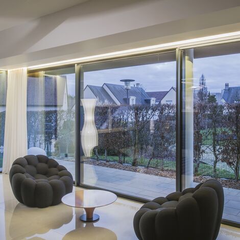 Je recherchais une transparence maximale et la nouvelle technologie dormant caché du SlimPatio 68 offrait une grande surface de vitrage pour un minimum de masses vues aluminium. En effet, sa conception assure d’importants gains de lumière et d’apports solaires tout en garantissant une isolation thermique exceptionnelle. Avantage supplémentaire, son seuil encastré simplifie la liaison avec l’extérieur.